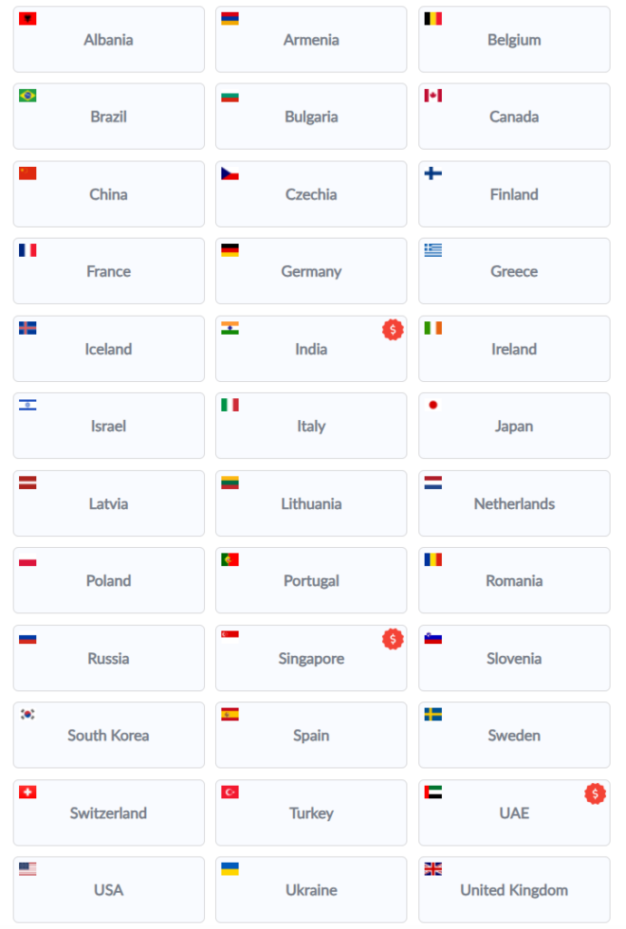 - 🇺🇸 DAL1 (Dallas)、SEA1 (Seattle)、SJC1 (San Jose, 美国)